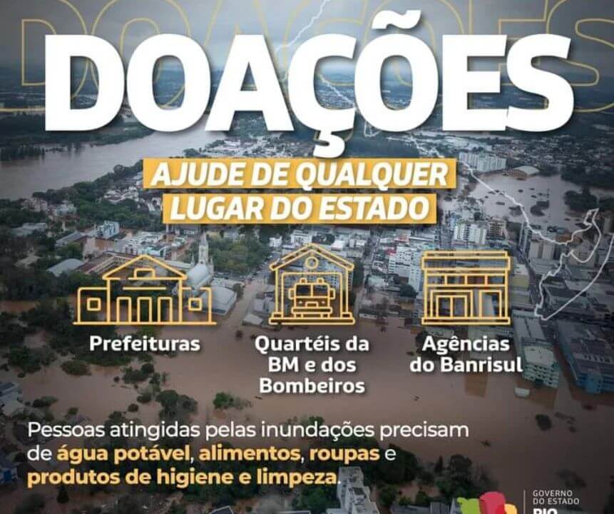 ⛈️ A população atingida pelas enchentes precisa de água potável, alimentos, roupas e produtos de higiene e limpeza. As doações podem ser feitas nos locais indicados.