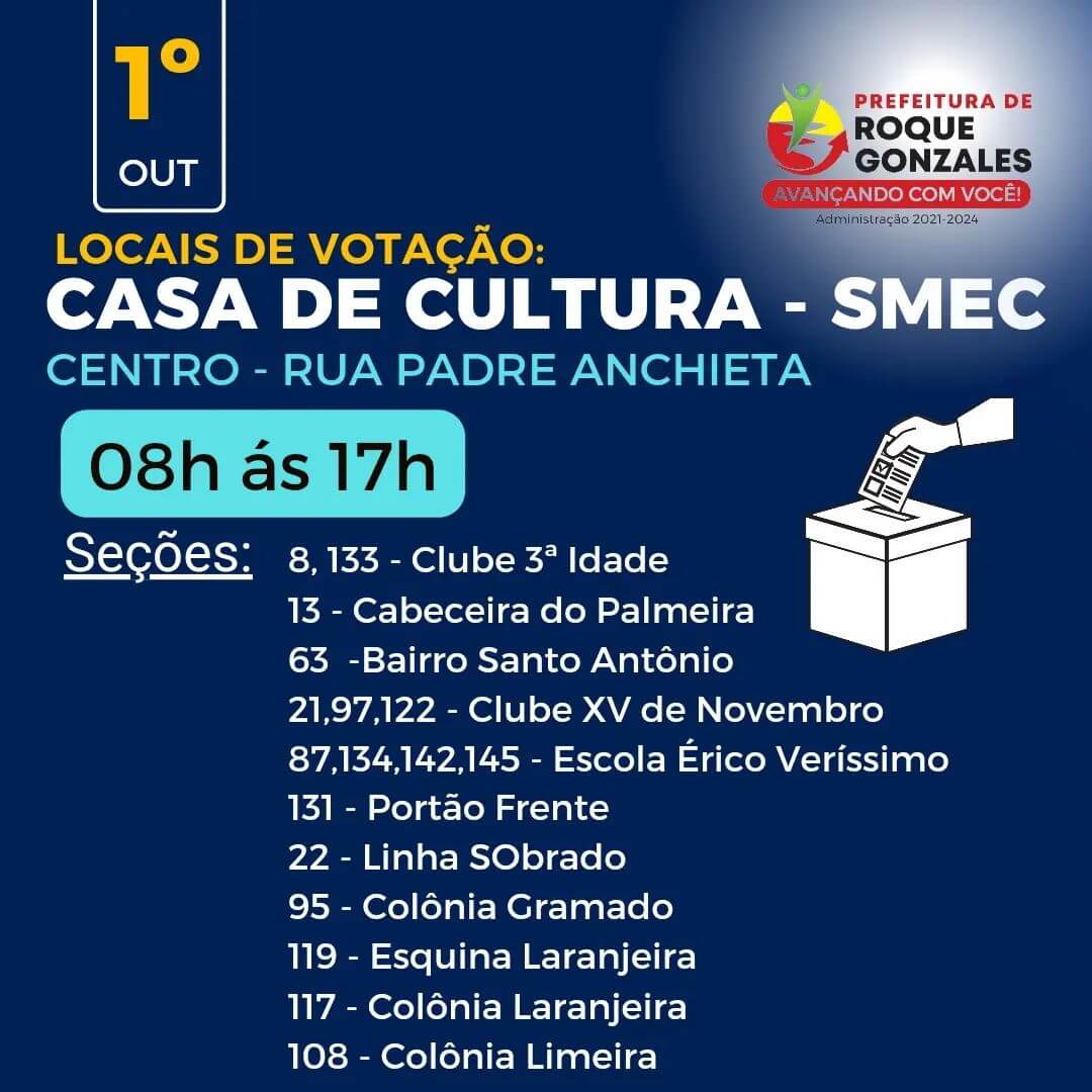 🗳 Confira os locais e horários de votação. Arrasta pro lado.