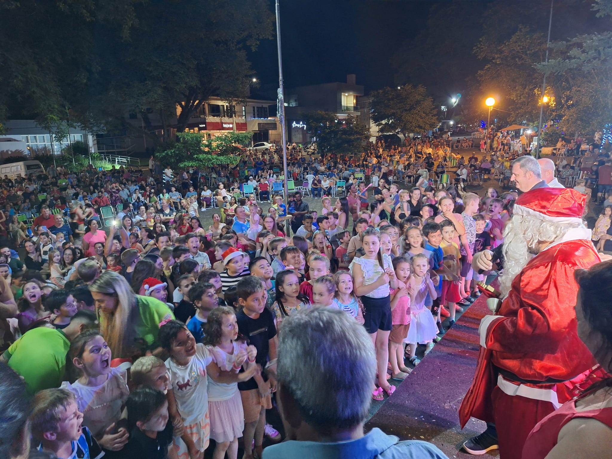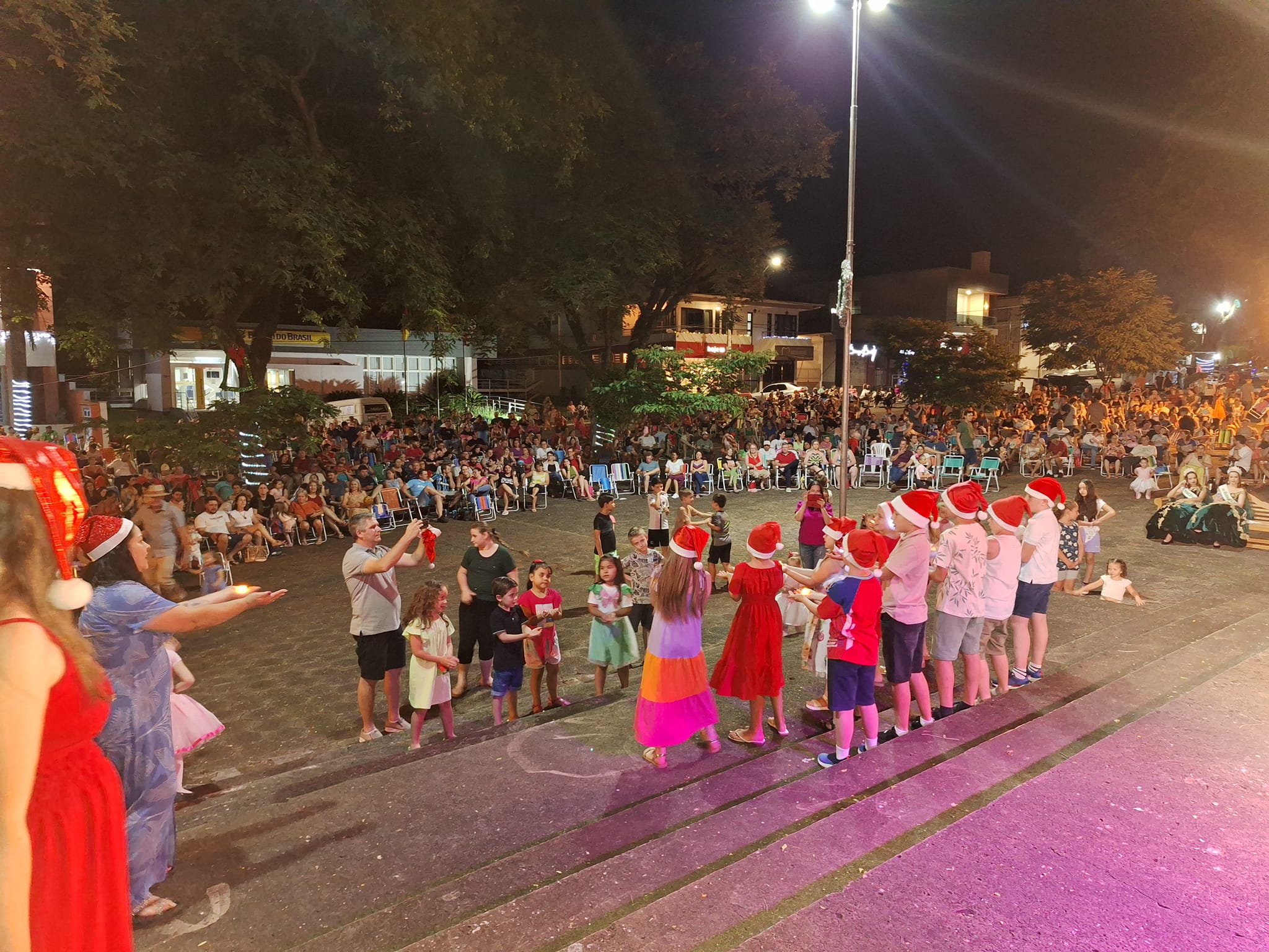 A programação aconteceu na Praça Adair Vicente de Brum e encantou o público com a chegada do Papai Noel, apresentações culturais e um show especial com Grupo Modão e Rene Diogo & Fontoura.