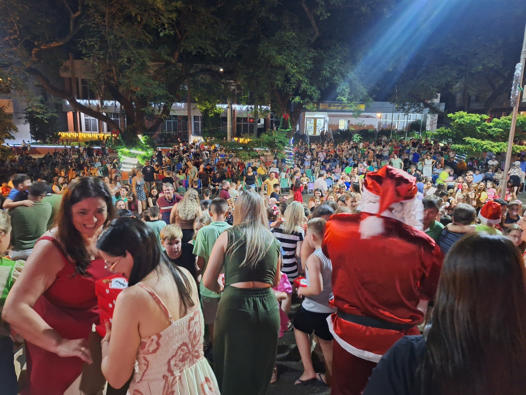 O evento iniciou com a apresentação dos grupos as Anitas e Sementinhas do CTG Sentinelas da Cascata, que encantaram o público que prestigiava o evento. Após os pronunciamentos, a comunidade pode acompanhar a chegada do Papai Noel que entregou os pacotinhos às crianças, o sorteio do concurso natalino e do Bolão de Prêmios 2024.