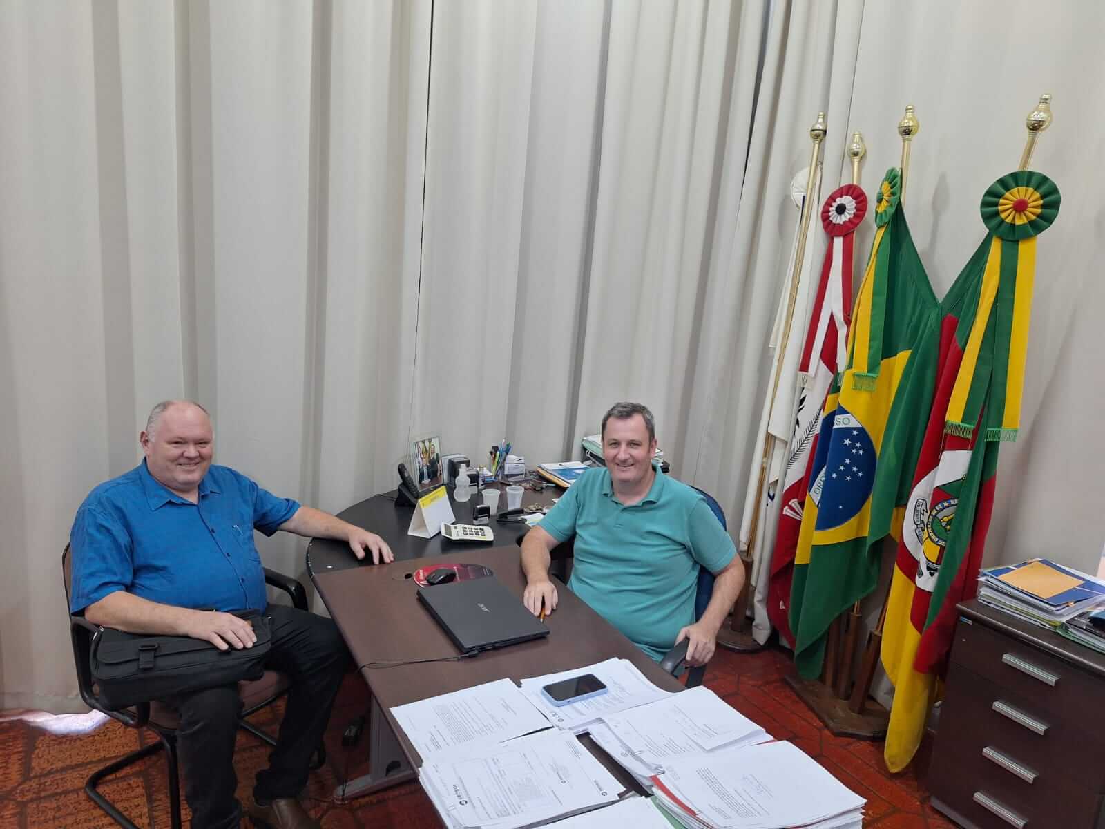 Na tarde desta quinta-feira, 9 de janeiro, o Prefeito Fernando Mattes Machry recebeu em seu gabinete o assessor parlamentar do Senador Luis Carlos Heinze, Sr Edemar Schonwald. Na visita de cortesia, além de temas ligados a administração municipal, foram abordados os investimentos que estão sendo realizados no Município com recursos destinados por emendas parlamentares do Senador Heinze, entre elas a obra de pavimentação com intertravado na Rua Zimmer que se encontra em fase adiantada de execução.