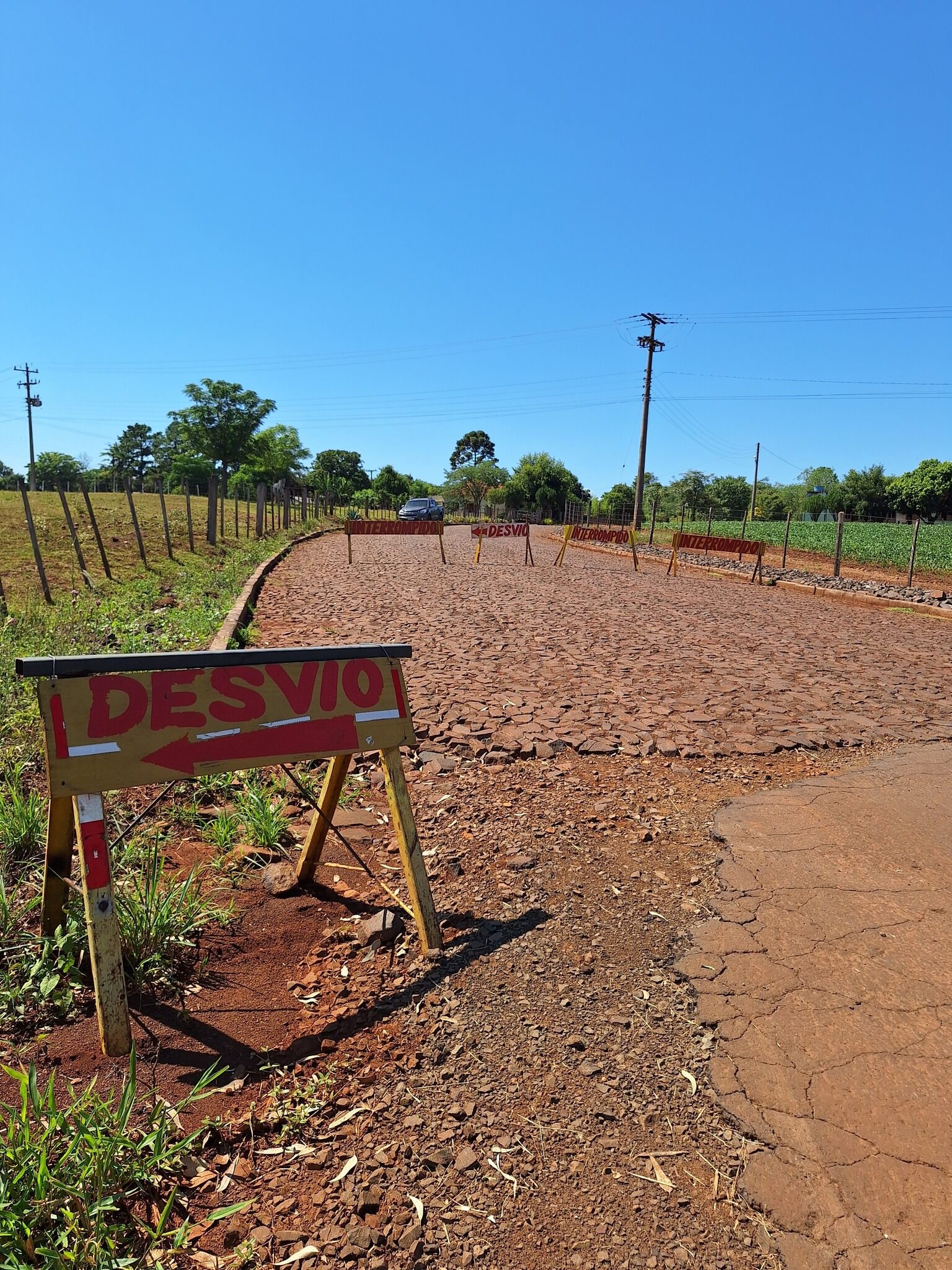 A Administração Municipal informa a toda a população que, devido ao início das obras de calçamento em um trecho da estrada que liga o Bairro Santo Antônio à BR 392, o trânsito ficará interditado por um período.