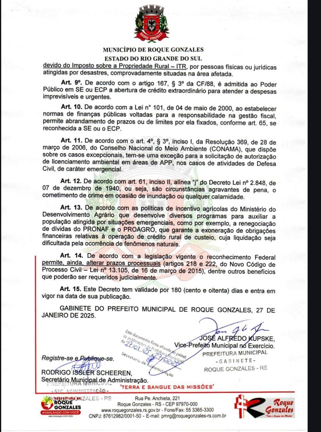 O Decreto n° 3412 foi emitido em razão da persistência dos efeitos da estiagem. Para que o decreto seja reconhecido, a administração precisa incluir os dados das perdas no sistema estadual da Defesa Civil. A iniciativa visa facilitar o recebimento de recursos, a fim de amenizar os problemas enfrentados pelos agricultores, além de contribuir para a renegociação das dívidas. O próximo passo será a homologação pelo governo do estado e após o reconhecimento pelo Governo Federal.