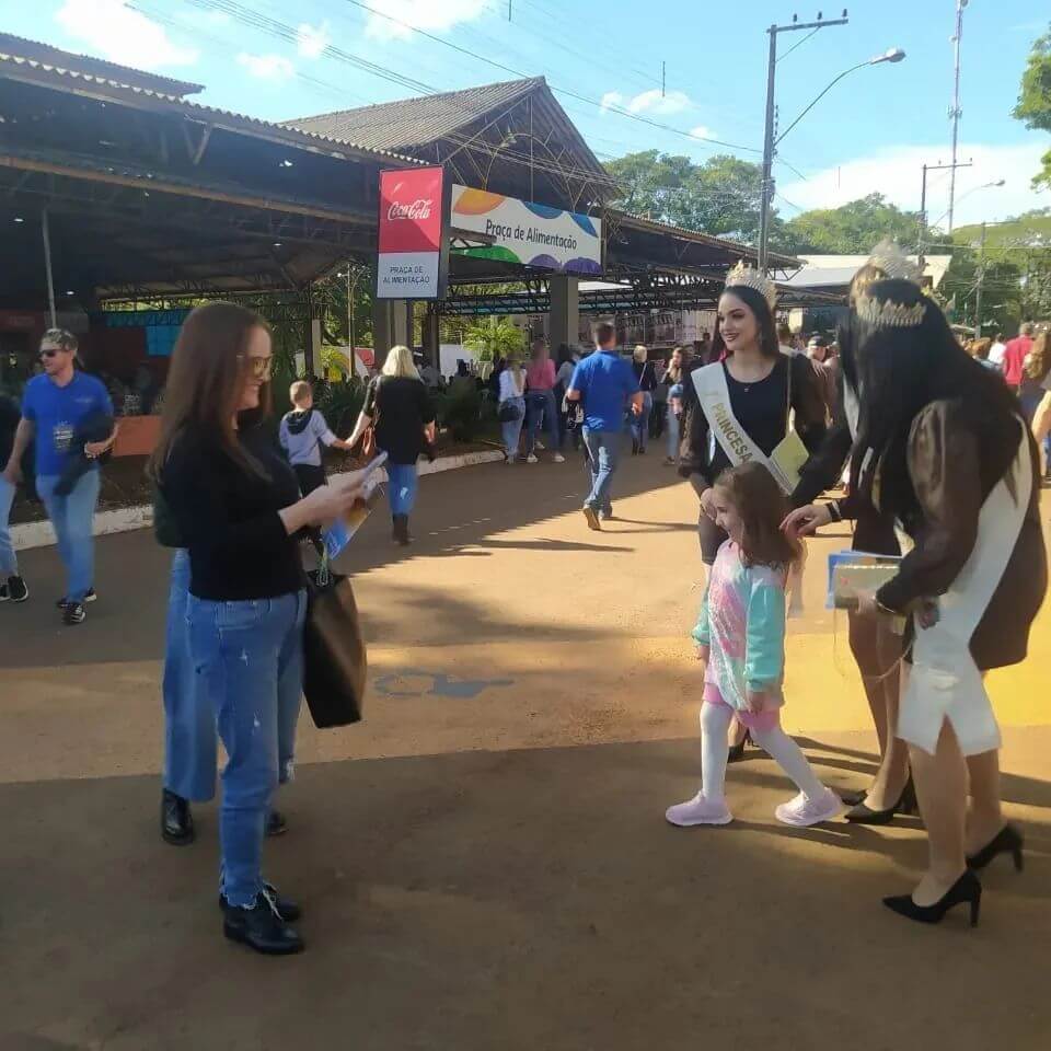 📆 Na tarde deste domingo (08) as Soberanas do Município de Roque Gonzales, a Rainha Camila Diel, a 1° Princesa Bruna Turquete e a 2° Princesa Jéssica Santos, acompanhadas da Diretora do Turismo Luane Marasca Bronzani estiveram divulgando o Município no último dia da Fenasoja 2022.