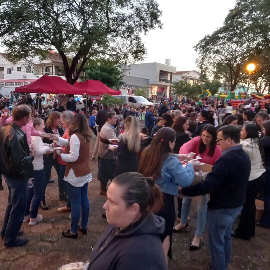 👨👩👧👦 Foi uma tarde de muitas alegrias e diversão. A Comunidade de Roque Gonzales pode aproveitar uma mateada a cargo da Ervateira Seiva Pura, brinquedos infláveis para a criançada, cerimônia de aniversário com presença das Autoridades do Município e região e para encerrar Show com Emerson Gottardo e Grupo.