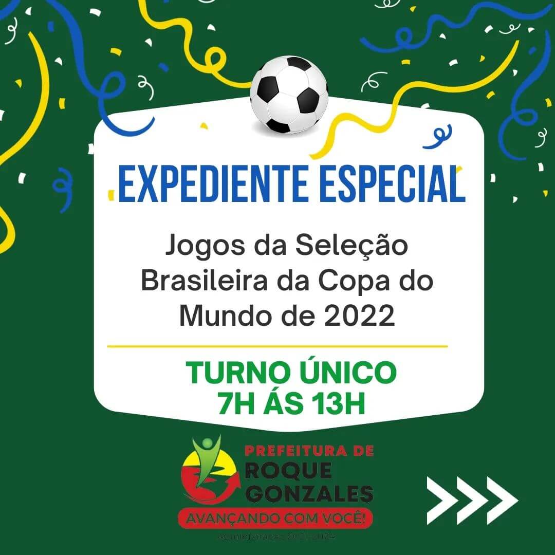 🇧🇷 A Administração Municipal por meio do Decreto N° 3178, de 7 de novembro de 2022, dispõe sobre o horário de expediente nos dias dos jogos da Seleção Brasileira de Futebol, ma fase de grupos da Copa do Mundo no Qatar.