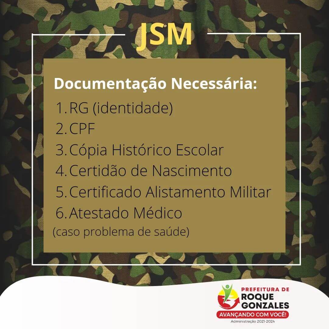 🪖 A Junta de Serviço Militar de Roque Gonzales comunica a todos os interessados que no próximo dia 28 de setembro do corrente ano acontecerá a Seleção Geral 2022 a partir das 7 horas no Clube da 3° Idade.