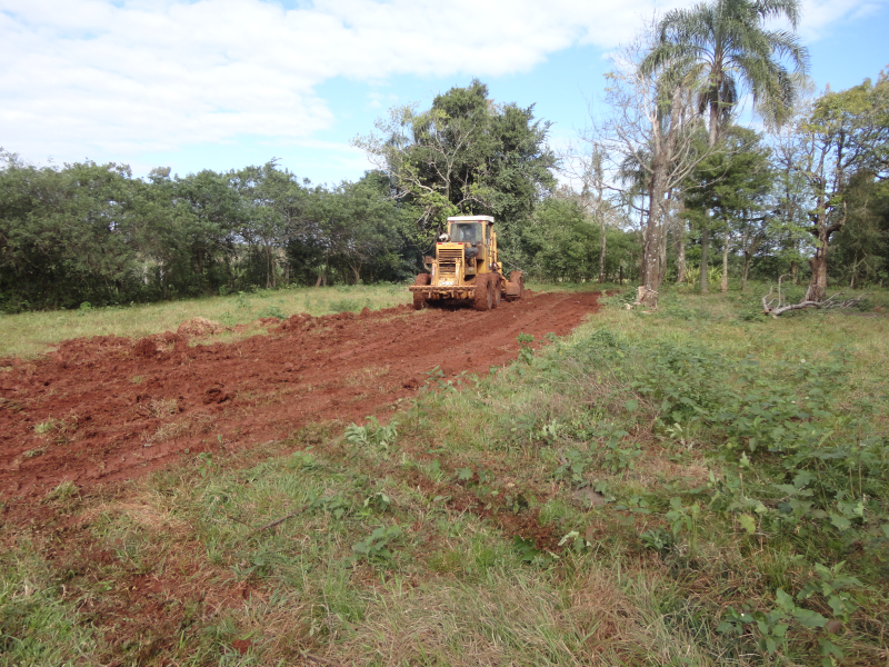 As obras de terraplanagem foram efetuadas primeiramente no Distrito do Rincão Vermelho e nos próximos dias serão realizadas na Sede. A terraplanagem é de responsabilidade da Prefeitura de Roque Gonzales, como contrapartida física.
