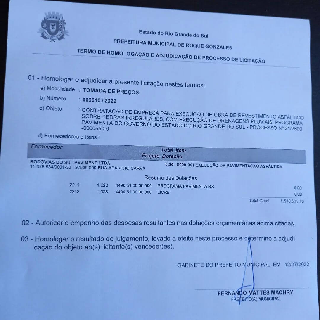📆 Nos próximos dias, a Prefeitura Municipal irá assinar contrato com a empresa Rodovias do Sul - Pavimentadora Ltda da cidade de Santo Ângelo para execução de obra de revestimento asfáltico sobre pedras irregulares, com execução de drenagens pluviais do Programa Pavimenta do Governo do Estado do Rio Grande do Sul.
