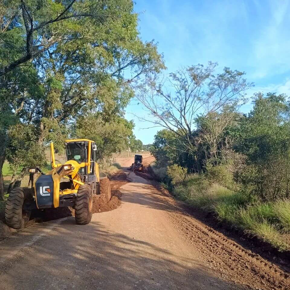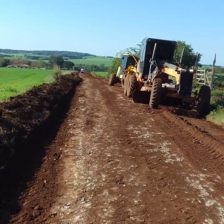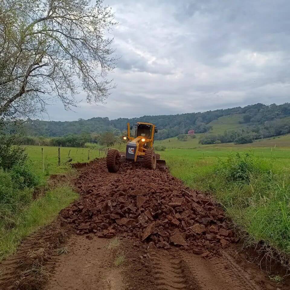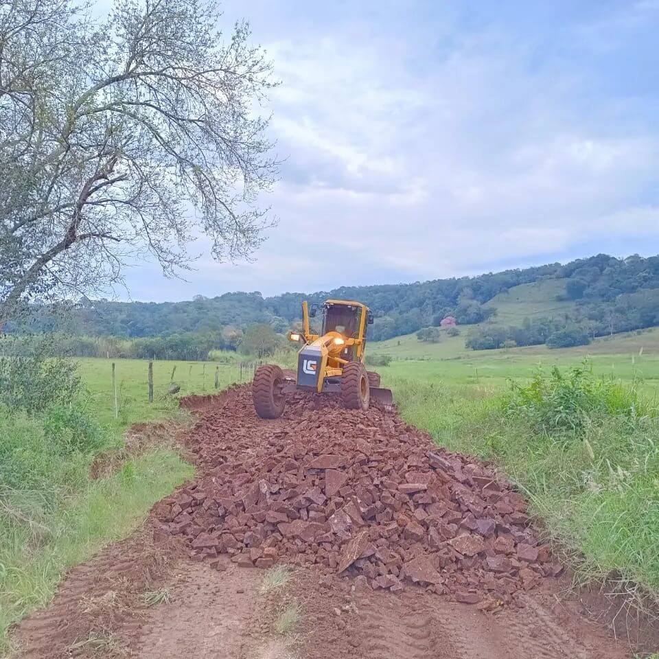 🚜 Nas Comunidades de Linha Sobrado e Inhacurutum, os serviços de manutenção das estradas vicinais com encascalhamento, patrolamento e compactação.