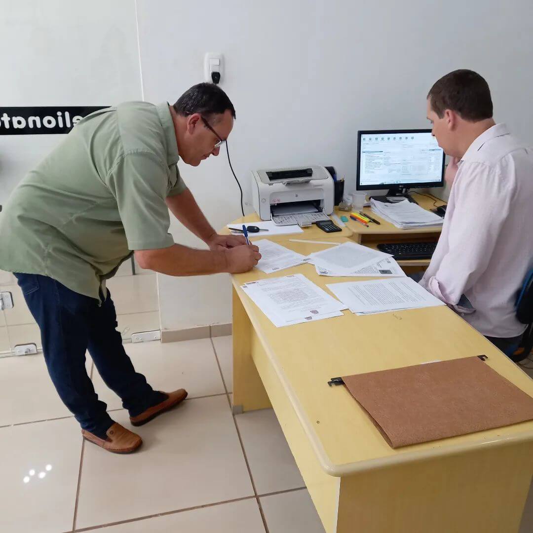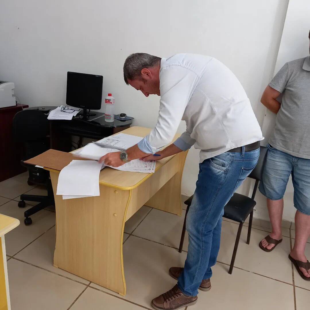 📆 Nesta terça-feira (03) o Prefeito Municipal Fernando Mattes Machry acompanhado do empresário Elias Pires dos Santos da cidade de São Luiz Gonzaga estiveram no Tabelionato de Notas para a assinatura de escritura pública dos lotes n° 05 e n° 06, da quadra E do Distrito Industrial José Altair Poersch.