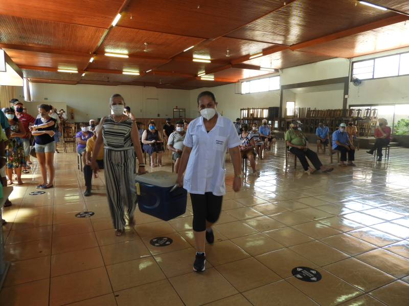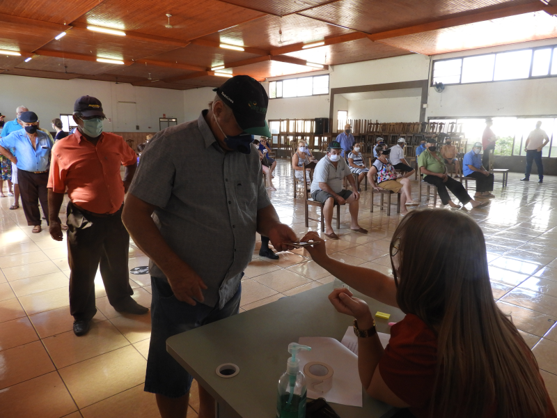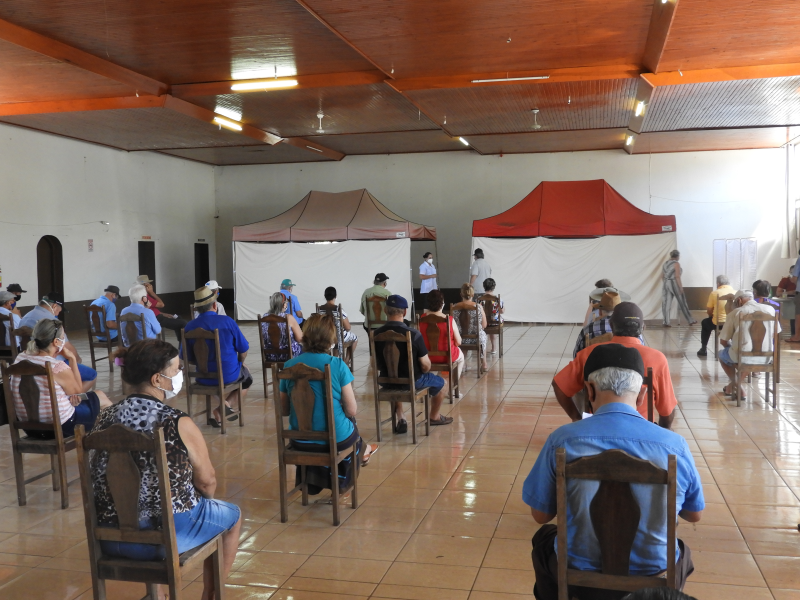 A Secretaria Municipal de Saúde de Roque Gonzales, realizou a vacinação contra COVID-19, primeira dose, para idosos de 71 e 72 anos, nesta quinta-feira, dia 25 de março, nas dependências do Clube XV de Novembro.
