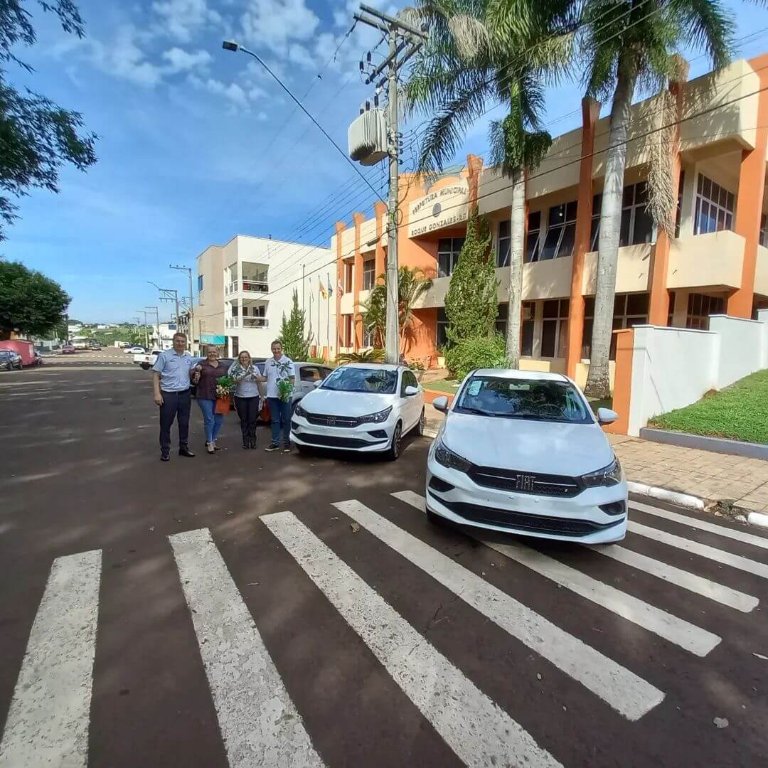 📆 Na tarde desta terça-feira (26), o Prefeito Fernando Machry acompanhado da Secretária Municipal de Saúde Rejane Weiler receberam dois novos veículos para o transporte de pacientes da Secretaria Municipal de Saúde de Roque Gonzales.