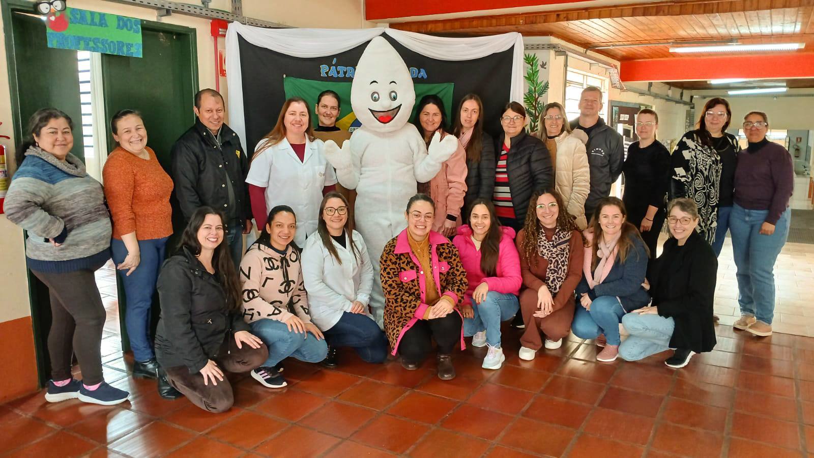 Na manhã desta sexta-feira, 5 de setembro, a Administração Municipal de Roque Gonzales, por meio da Secretaria de Saúde, realizou uma conferência da situação vacinal dos trabalhadores da Escola Santo Antônio de Pádua. A ação contou com a presença do personagem Zé Gotinha, que reforçou a importância da vacinação.