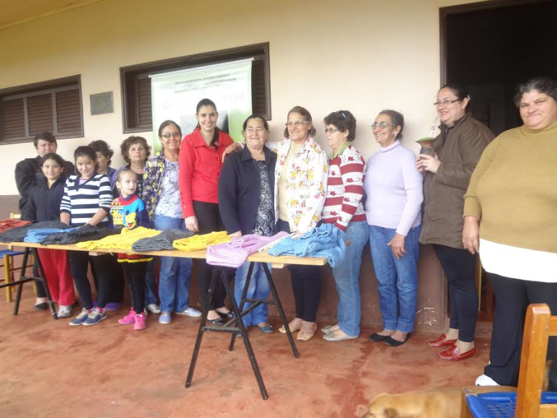 Dia 20, encerramento da oficina de tricô com o grupo de mulheres da Esquina Laranjeira.