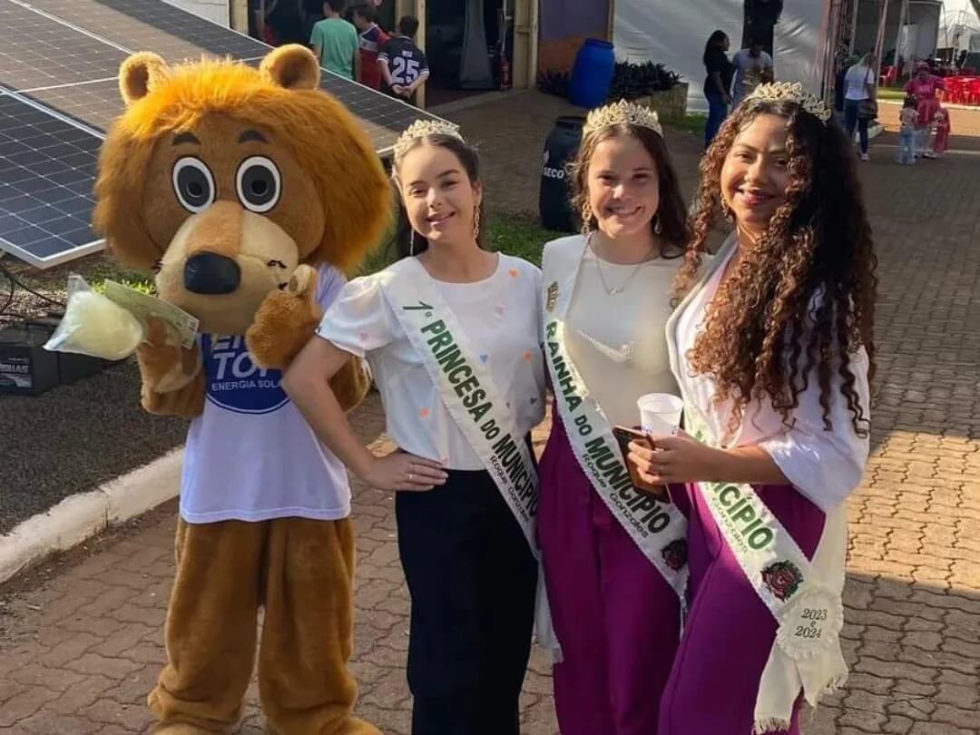 📆 Na última sexta-feira (29), as Soberanas de Roque Gonzales: Rainha Kauane, 1ª Princesa Estefany e 2ª Princesa Sara Bethina acompanhadas da Secretária de Educação, Cultura e Turismo Mirian Barcelos e da Diretora do Departamento de Turismo Luane Marasca visitaram a Expo São Luiz, na cidade de São Luiz Gonzaga promovendo o Município de Roque Gonzales.