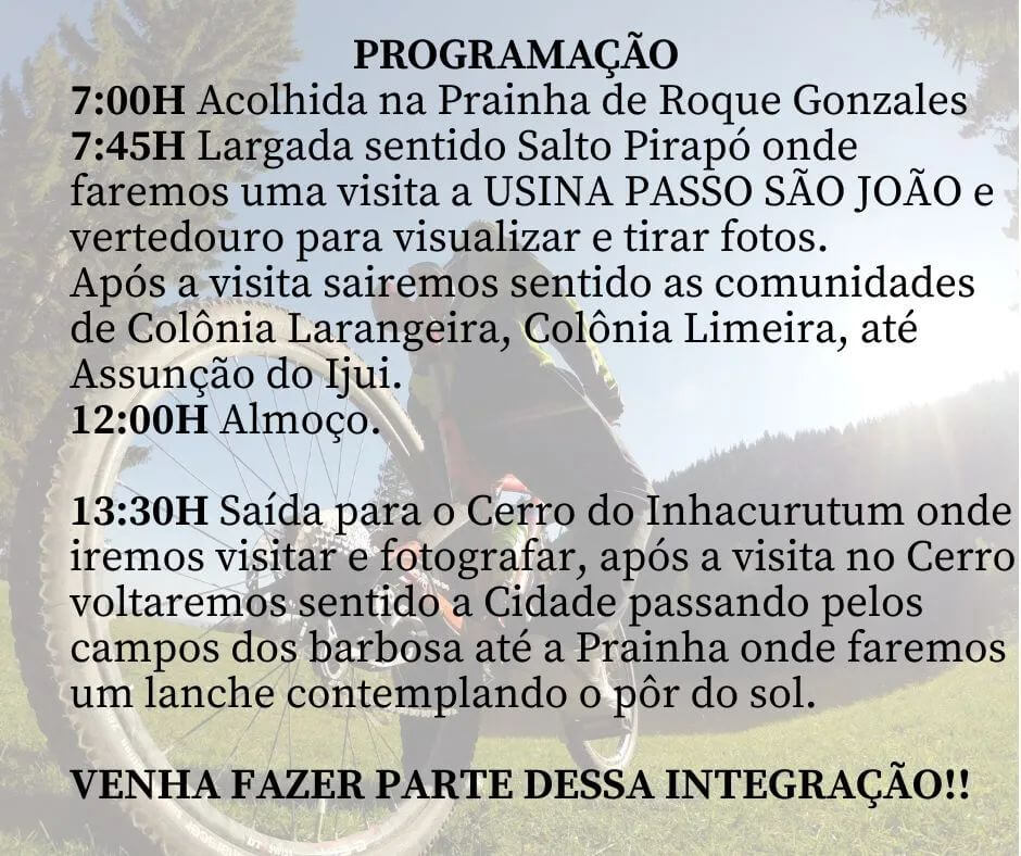 🚴‍♂️ A Prefeitura Municipal parceria com a Paróquia São Roque Gonzales e os Nheçuanos organizam a 2° edição da Trilha da Integração Guarani- Jesuítica de Bike que irá acontecer: