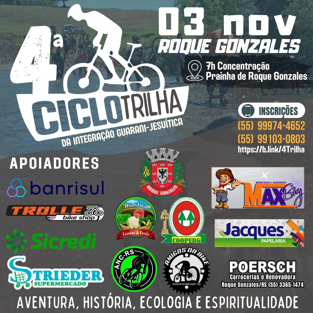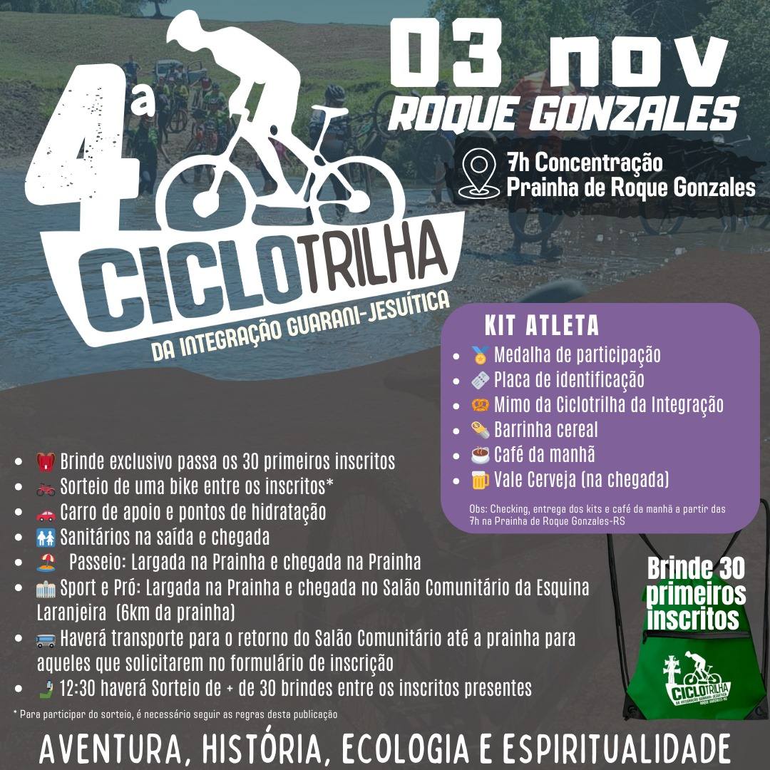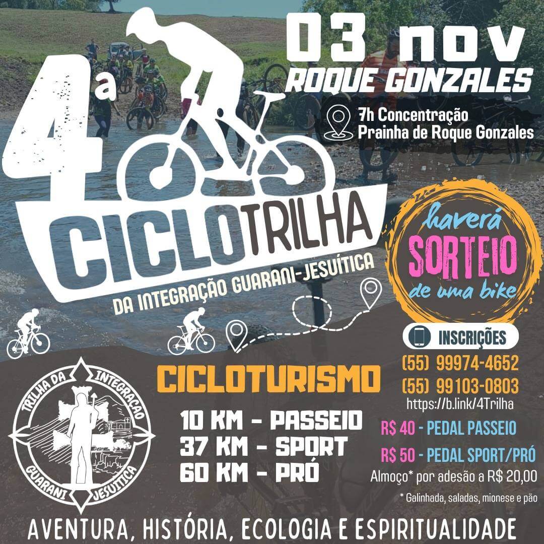 Os trilheiros poderão se aventurar pela história, cultura, espiritualidade e pelas belezas naturais do território roque-gonzalense.