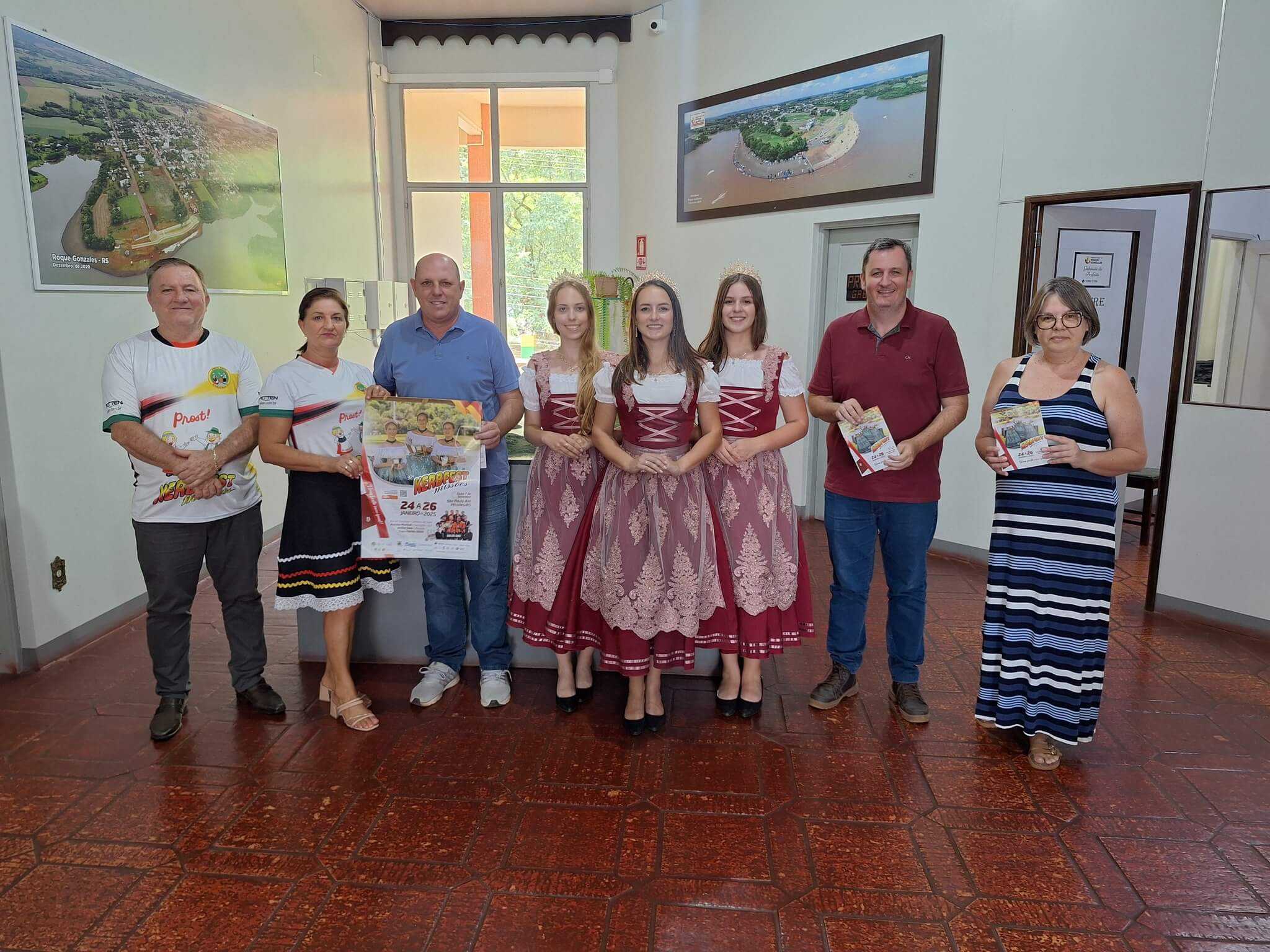 Na tarde desta sexta-feira (10), o Prefeito Fernando Mattes Machry e o Vice-prefeito José Alfredo Kupske tiveram a honra de receber a visita das Soberanas da tradicional festa alemã, a Kerbfest Missões, da cidade de São Paulo das Missões. Estiverem visitando o gabinete a Rainha da Kerbfest Missões, Vaneila Schneider, acompanhada da 1ª Princesa Paola Lunkes Harms e da 2ª Princesa Brenda Muller Haas. As soberanas estavam acompanhadas por Roque Engroff e Cristiane Marschall, integrantes da comissão organizadora da tradicional festa.